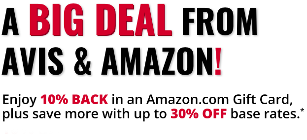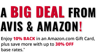 Enjoy 10% back as an Amazon Gift Card plus, get up to 30% off rental base rates!