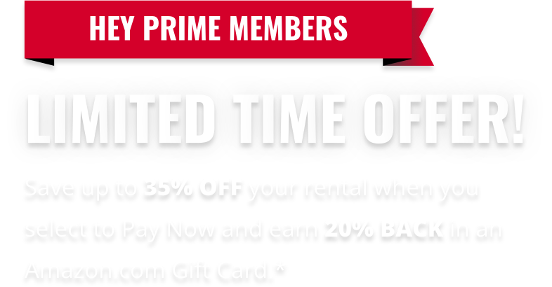 Up to 35% off your rental when you Pay Now PLUS 20% back in an Amazon Gift Card